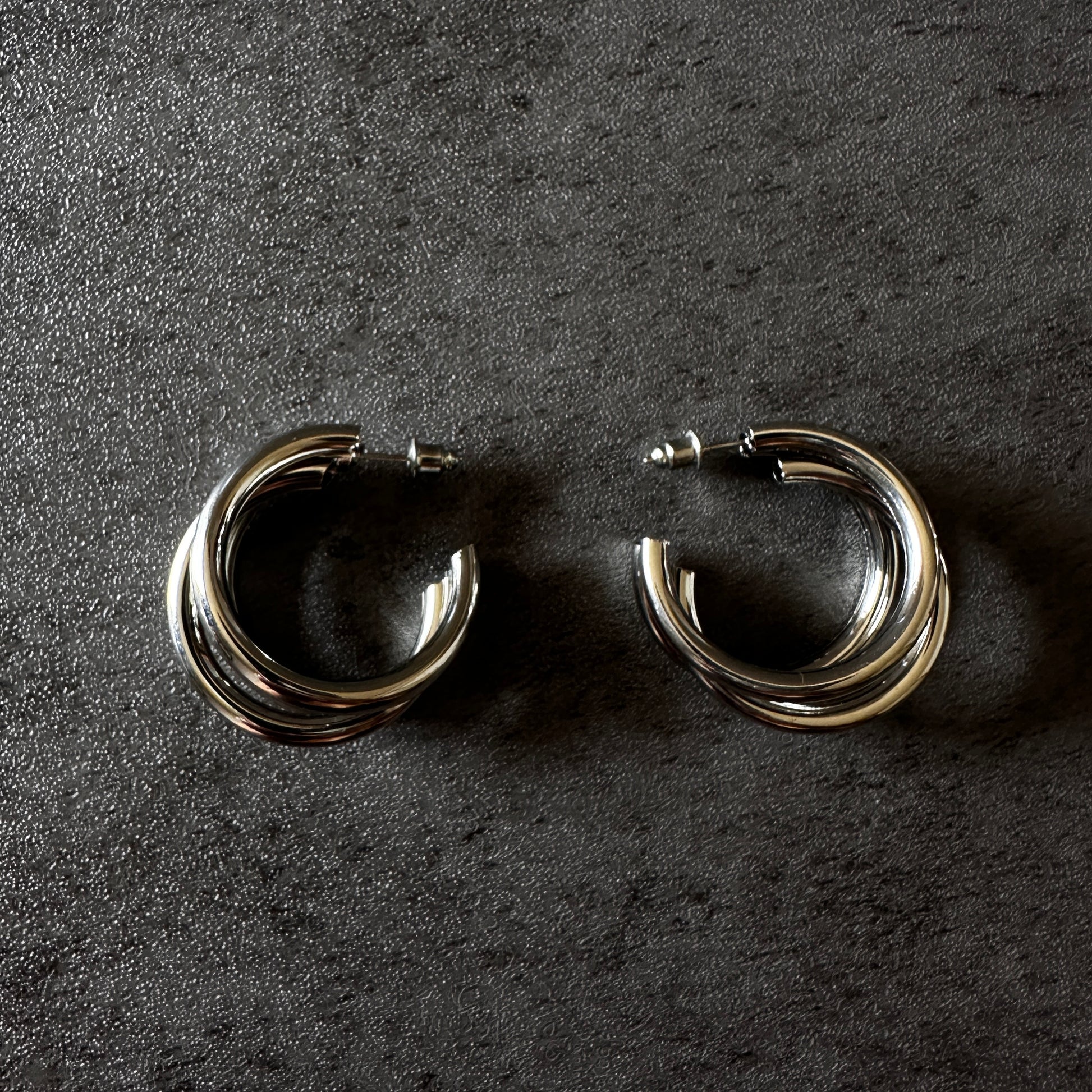 しっかりと存在感のある、大きめの3連ピアス。カジュアルにも、オケージョンスタイルにも!