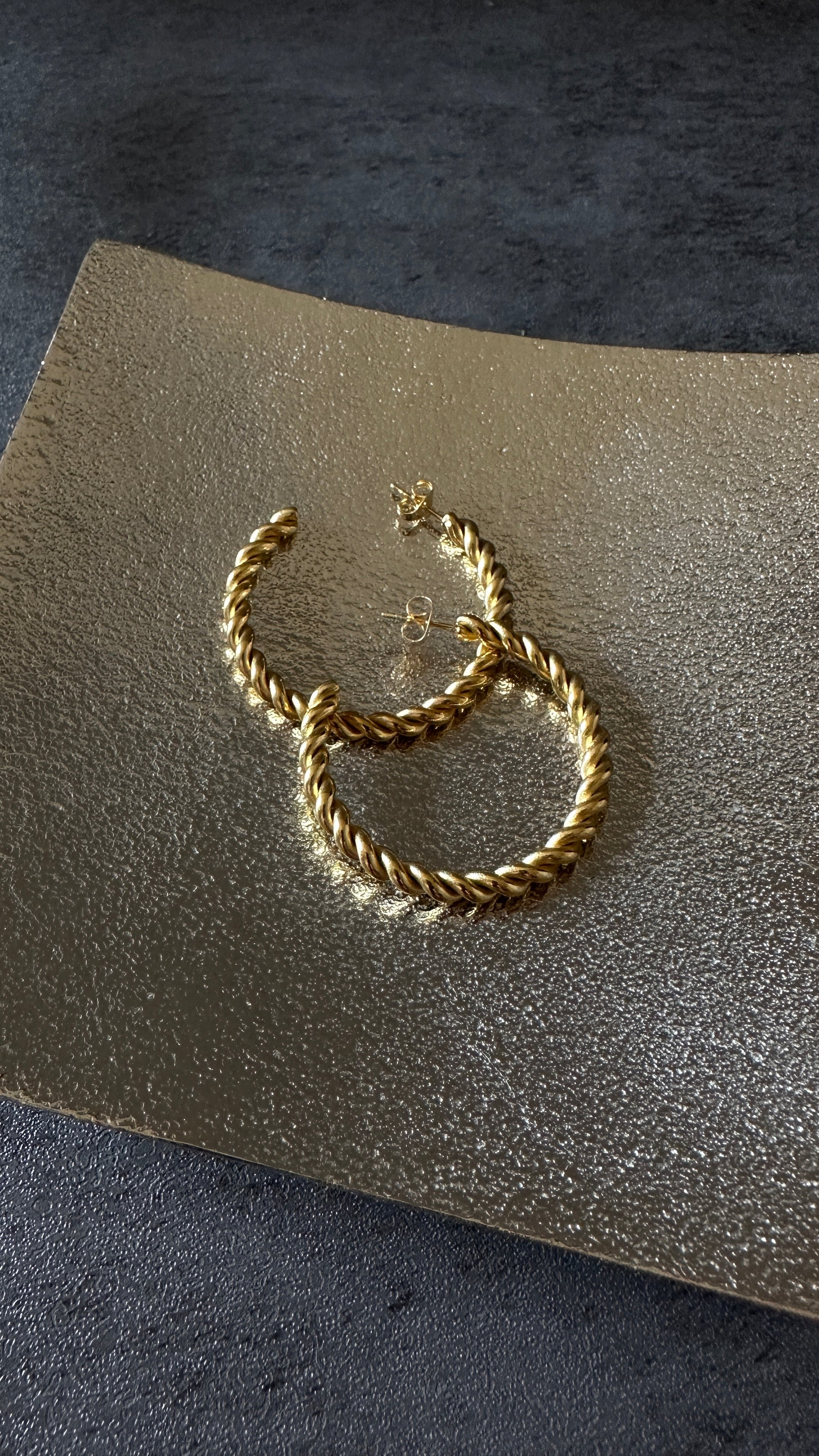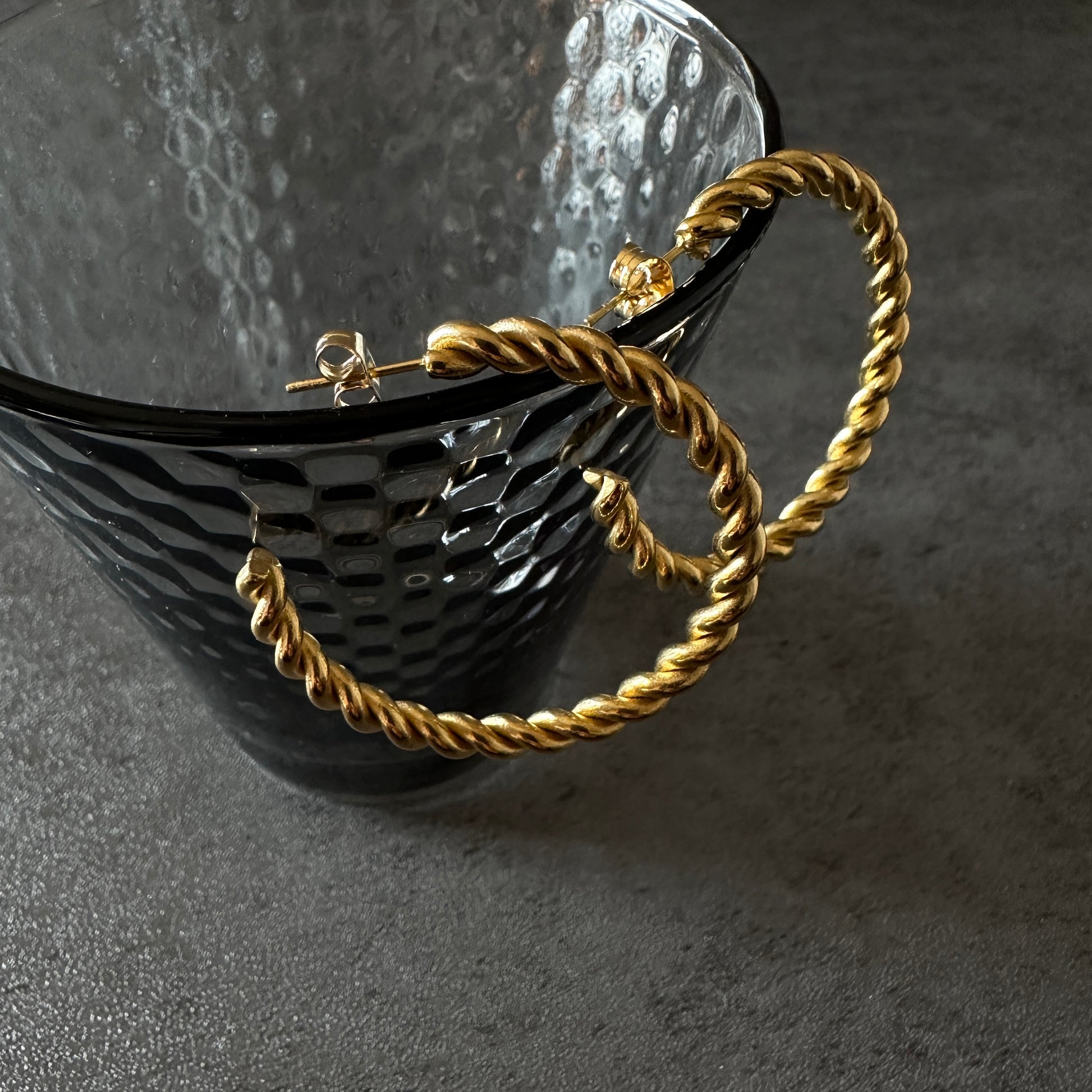大きめで存在感のあるツイストフープピアス。